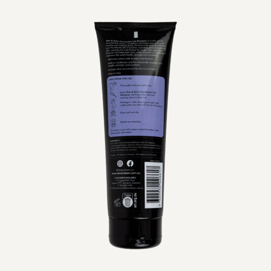 Dan & Sam’s Purrfection Cat Shampoo is a mild and gentle formulation, designed to keep your cat’s coat clean, conditioned and healthy, and leave them smelling great. Containing aloe vera extract, this shampoo soothes, nourishes and protects the skin with the inclusion of pro-vitamin B5 to keep the coat fresher