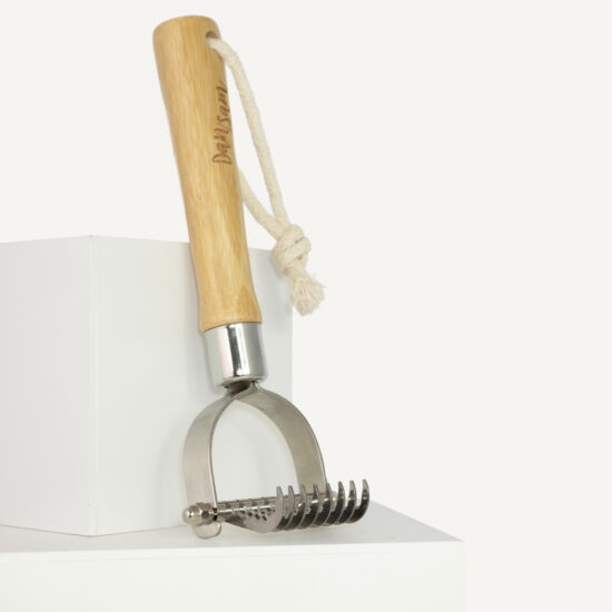 The Dan & Sam Bamboo Dematting Rake is ideal for cutting through knots and thinning hair. With rounded pins for your pet’s comfort, the dematting rake is the best tool for cutting and removing any dead, shedding, matted or knotted hair from even the innermost layer without damaging the coat.