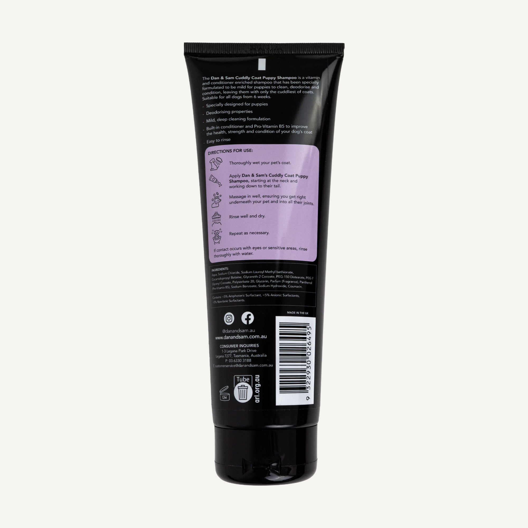 The Dan & Sam Cuddly Coat Puppy Shampoo has been specially formulated to be mild for puppies to clean, deodorise and condition, leaving them with only the cuddliest of coats. Suitable for all dogs from six weeks and up, including those with sensitive skin, the Cuddly Coat Puppy Shampoo has a built-in conditioner and Pro-Vitamin B5 to deeply clean and remove dirt and odour without stripping the coat of its essential oils. With an ‘easy rinse’ formulation, bath time is kept to a minimum, while the built-in conditioner and Pro-Vitamin B5 help to improve the health, strength and condition of your dog’s coat.
