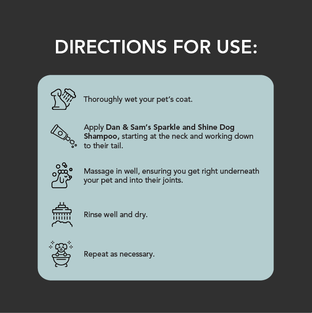 The Dan & Sam Sparkle and Shine Dog Shampoo is a luxurious shampoo that cares for your dog’s skin and coat. Suitable for all dogs from six weeks and up, the Sparkle and Shine Shampoo is enriched with oatmeal, chamomile and argon oil helping to soothe skin and leaving your pet’s coat sparkling. The Sparkle and Shine Dog Shampoo contains built-in vitamins and conditioners, helping to improve the natural shine and softness of the fur.